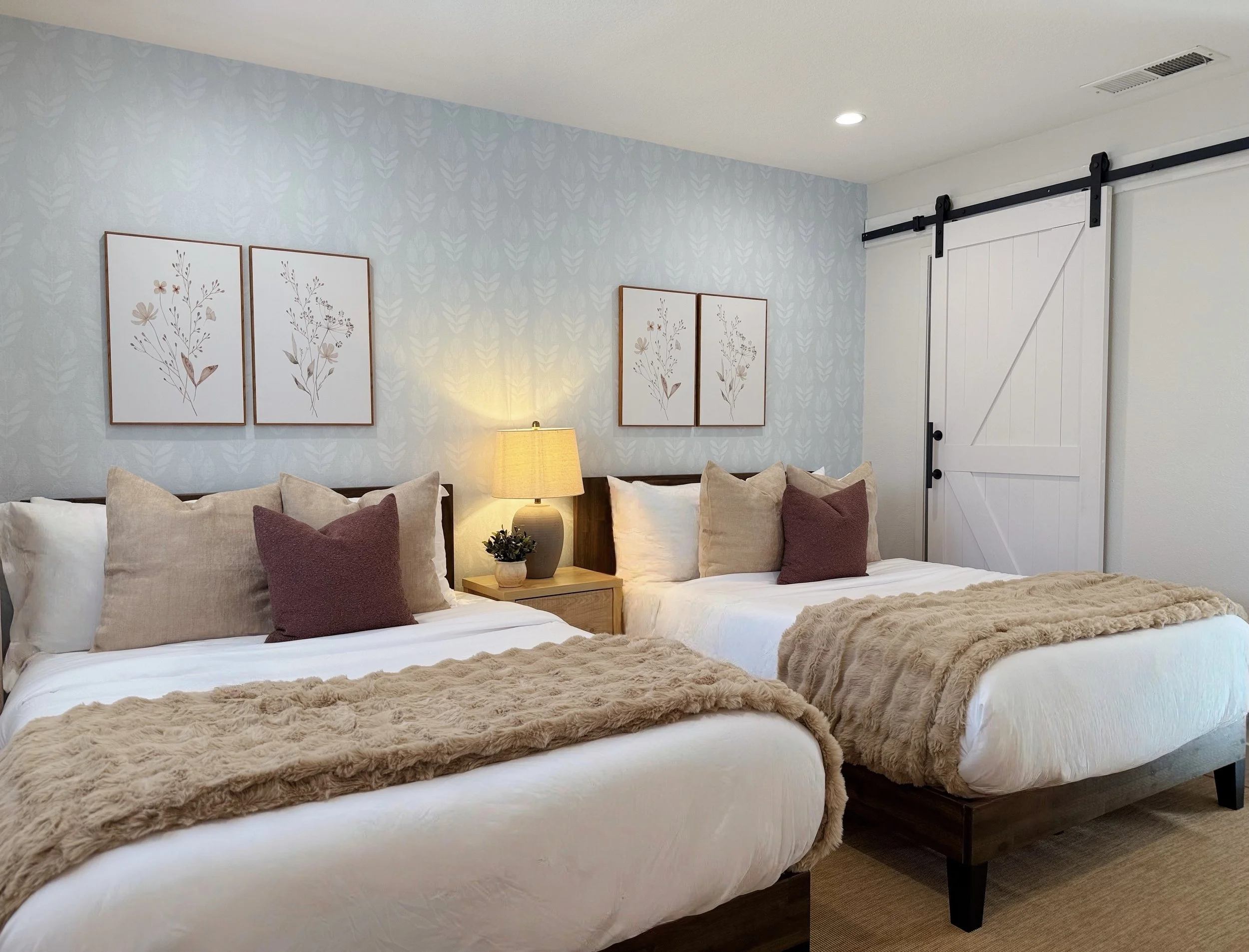 Inside, enjoy sun-drenched open living spaces with designer details, neutral tones, and a fully equipped kitchen. Each bedroom is a cozy haven, complete with plush bedding and warm lighting for restful nights after a day of work or adventure.
